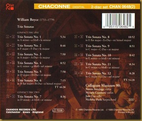 William Boyce (baptized 11 September 1711 – 7 February 1779) is widely regarded as one of the most important English-born composers of the 18th century. Born in London, Boyce was a choirboy at St Paul's Cathedral before studying music with Maurice Greene after his voice broke. A house in the present choir school is named after him. His first professional appointment came in 1734 when he was employed as an organist at the Oxford Chapel. He went on to take a number of similar posts before being appointed Master of the King's Musick in 1755 and becoming one of the organists at the Chapel Royal in 1758. When Boyce's deafness became so bad that he was unable to continue in his organist posts, he retired and worked on completing the compilation Cathedral Music that his teacher Greene had left incomplete at his death. This led to Boyce editing works by the likes of William Byrd and Henry Purcell. Many of the pieces in the collection are still used in Anglican services today. Boyce is best known for his set of eight symphonies, his anthems and his odes. He also wrote the masque Peleus and Thetis and songs for John Dryden's Secular Masque, incidental music for William Shakespeare's The Tempest, Cymbeline, Romeo and Juliet and The Winter's Tale, and a quantity of chamber music including a set of twelve trio sonatas.